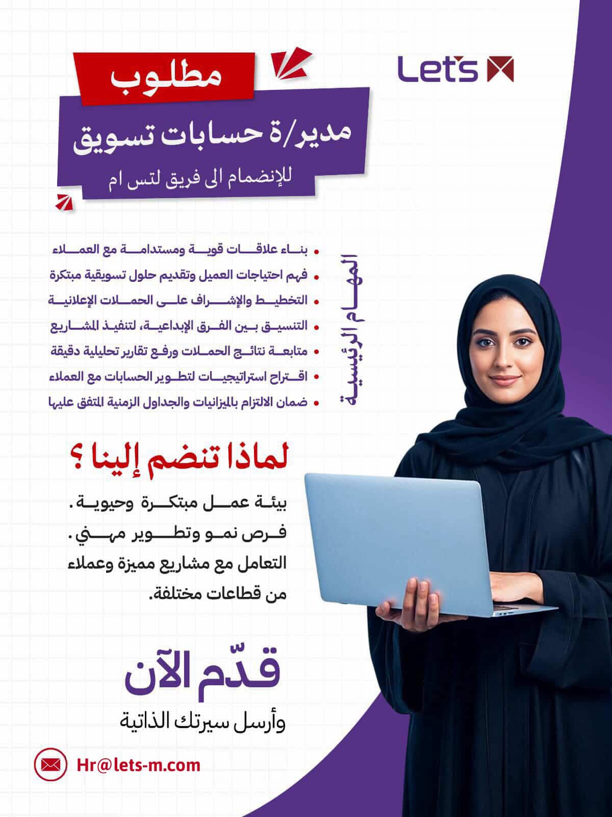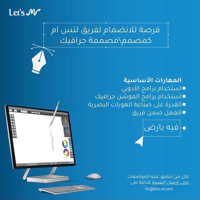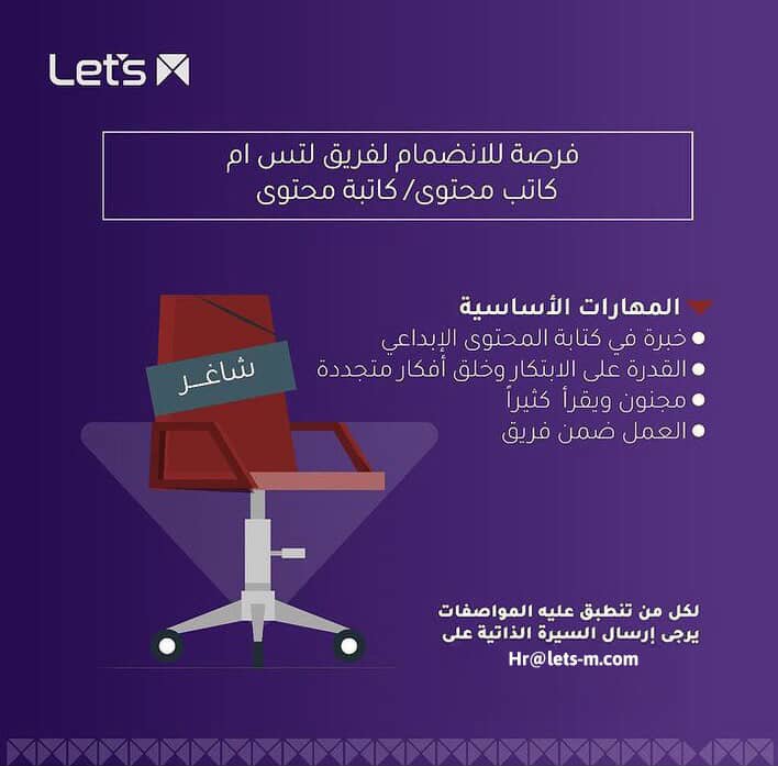 للتقديم علي هذه الوظيفة ارسل بياناتك علي البريد الإلكتروني Hr@lets-m.com